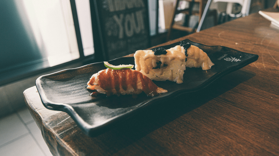 Freshly crafted sushi,